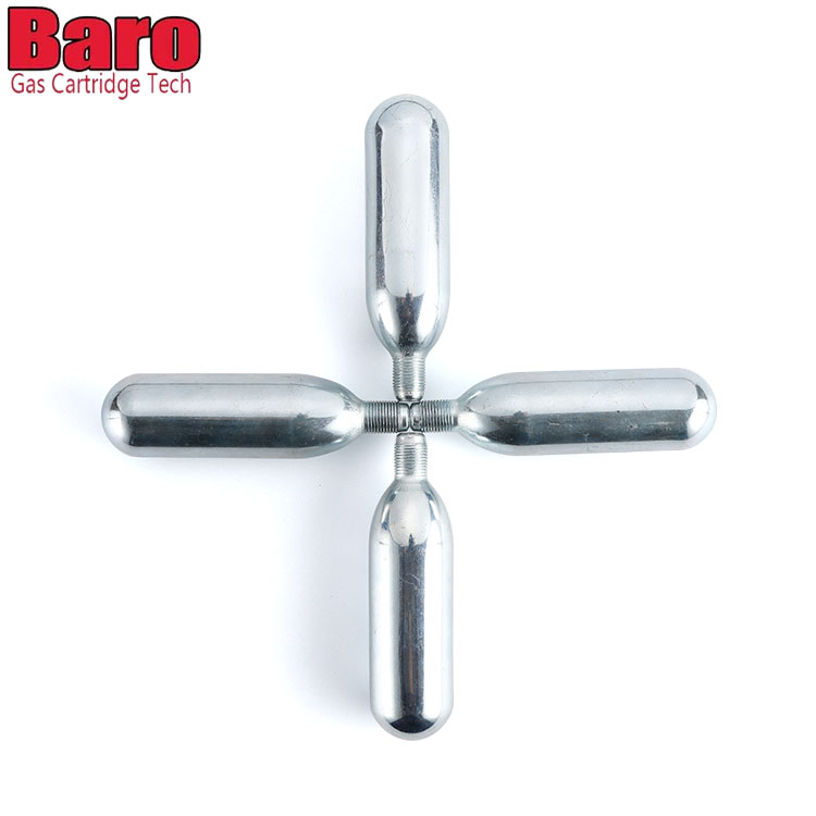 - Méid Snáithe 5/8 ″ UNF: Le méid snáithe de 5/8 ″ UNF, tá cartúis Baro CO2 comhoiriúnach go huilíoch agus is féidir iad a oiriúnú go héasca don chuid is mó de na córais dáileacháin (lena n-áirítear gach córas a úsáideann sorcóirí indiúscartha), rud a fhágann go ndéantar cartúis a shocrú agus a mhalartú. a ghaoith.